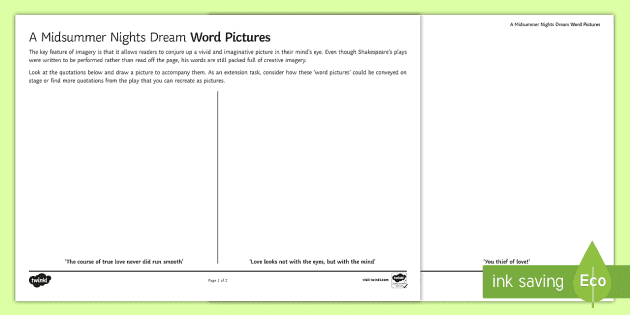 A Midsummer Night S Dream Visualisation Worksheets Twinkl