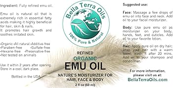 Amazon Com Bella Terra Oils Emu Oil 2 Oz 100 Pure Fully Refined Organic Undiluted Beauty Personal Care